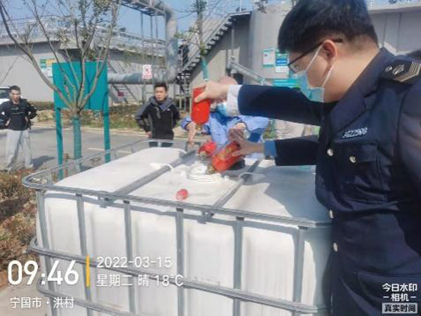 城北污水處理廠全員積極配合市場監(jiān)督管理局的銷毀行動,為保證正常生產(chǎn)不受影響,將所有“假酒”“假飲料”等進行開瓶后倒入提前準備好的儲存罐里。同時,安排化驗室對罐中液體進行取樣化驗,在保證各項出水指標達標的前提下,有計劃的將罐中液體作為污水進行無害化處理。