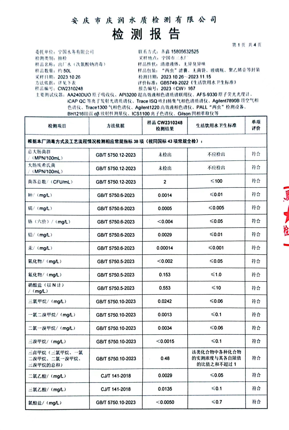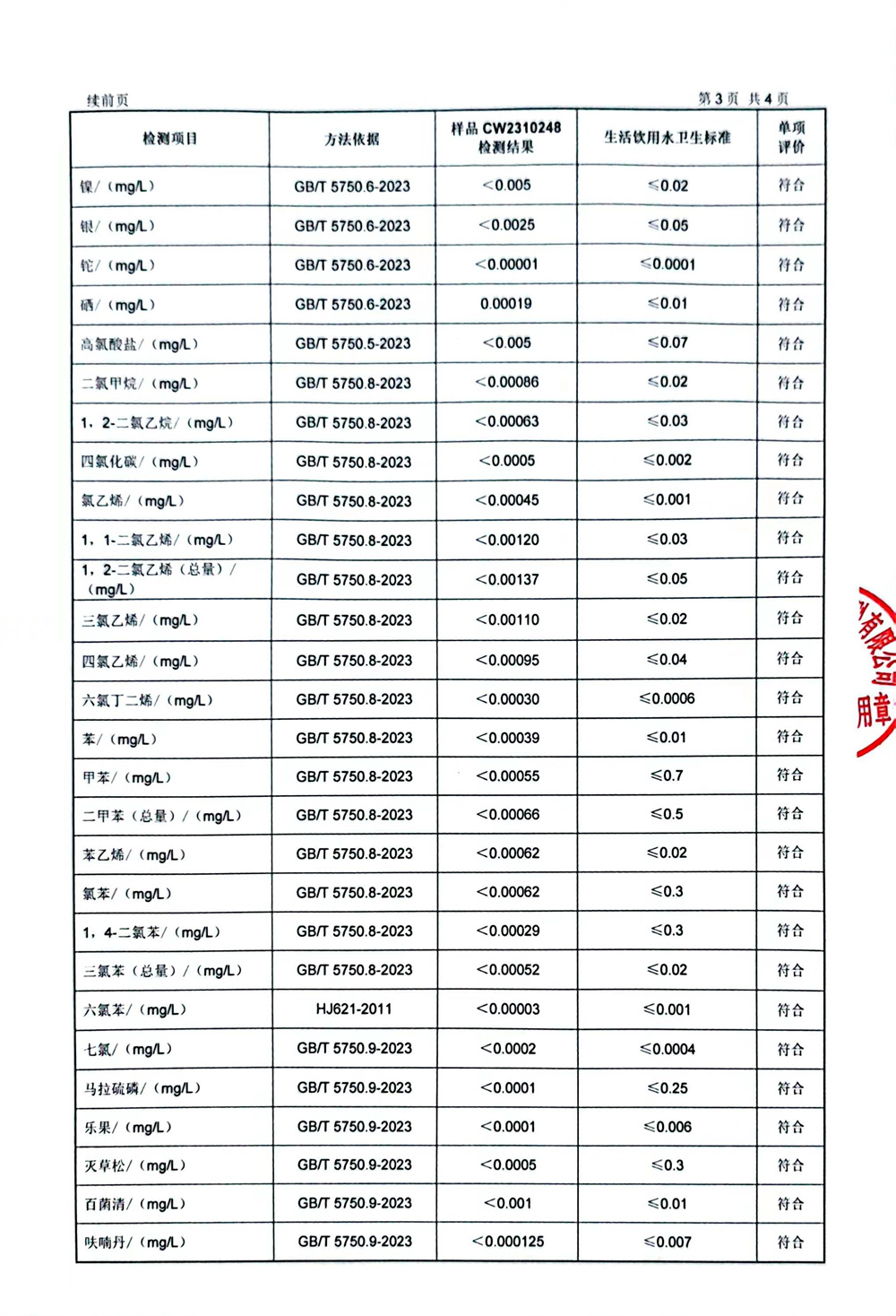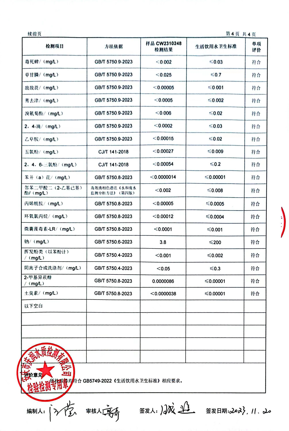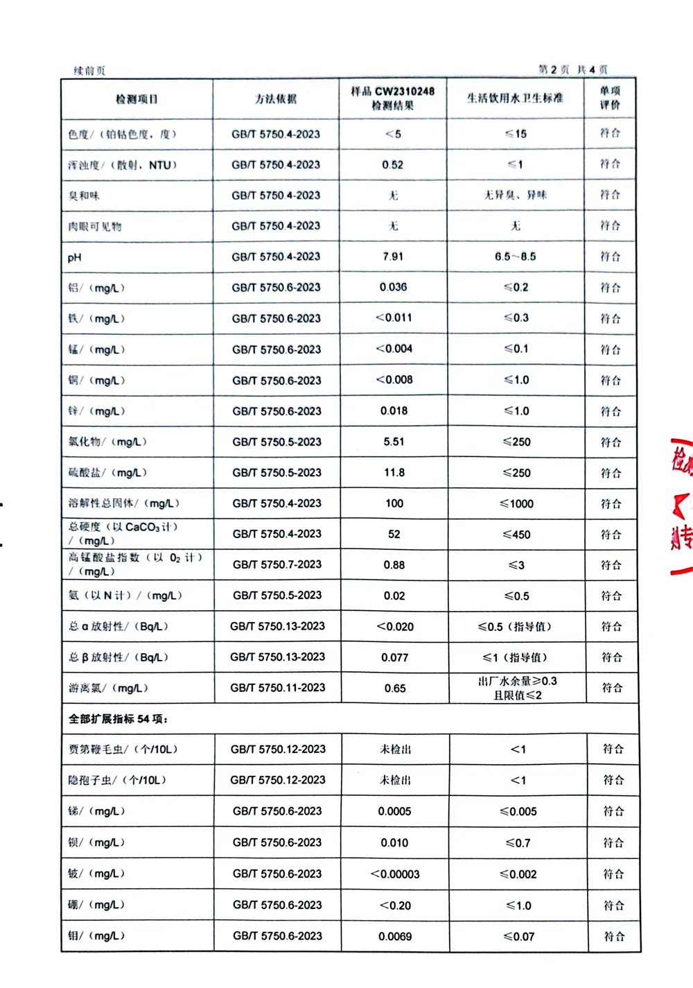 2023年下半年97項(xiàng)水質(zhì)檢測(cè)報(bào)告公示