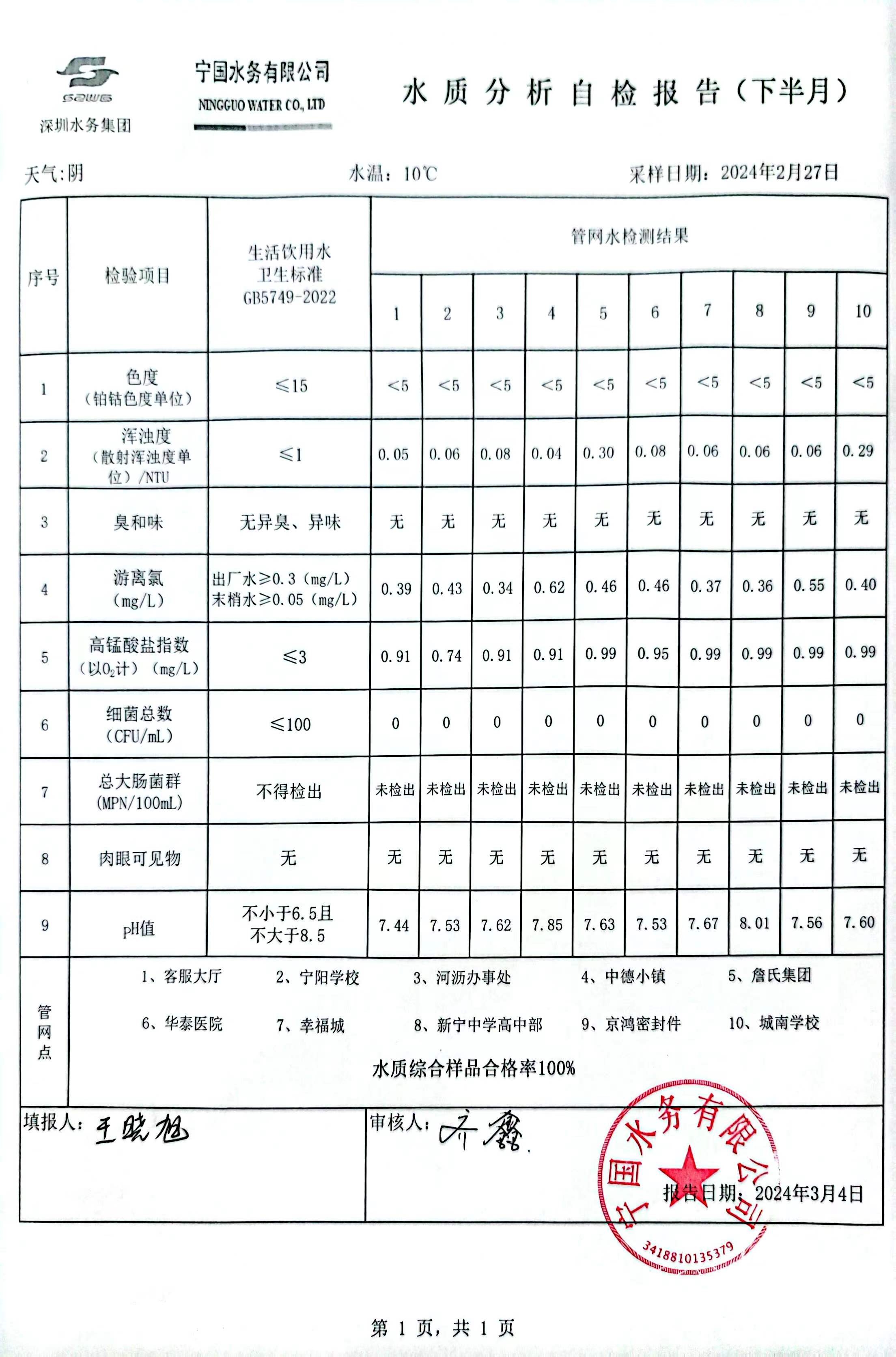 水質(zhì)公告當(dāng)前位置:首頁 > 信息公開 > 水質(zhì)公告