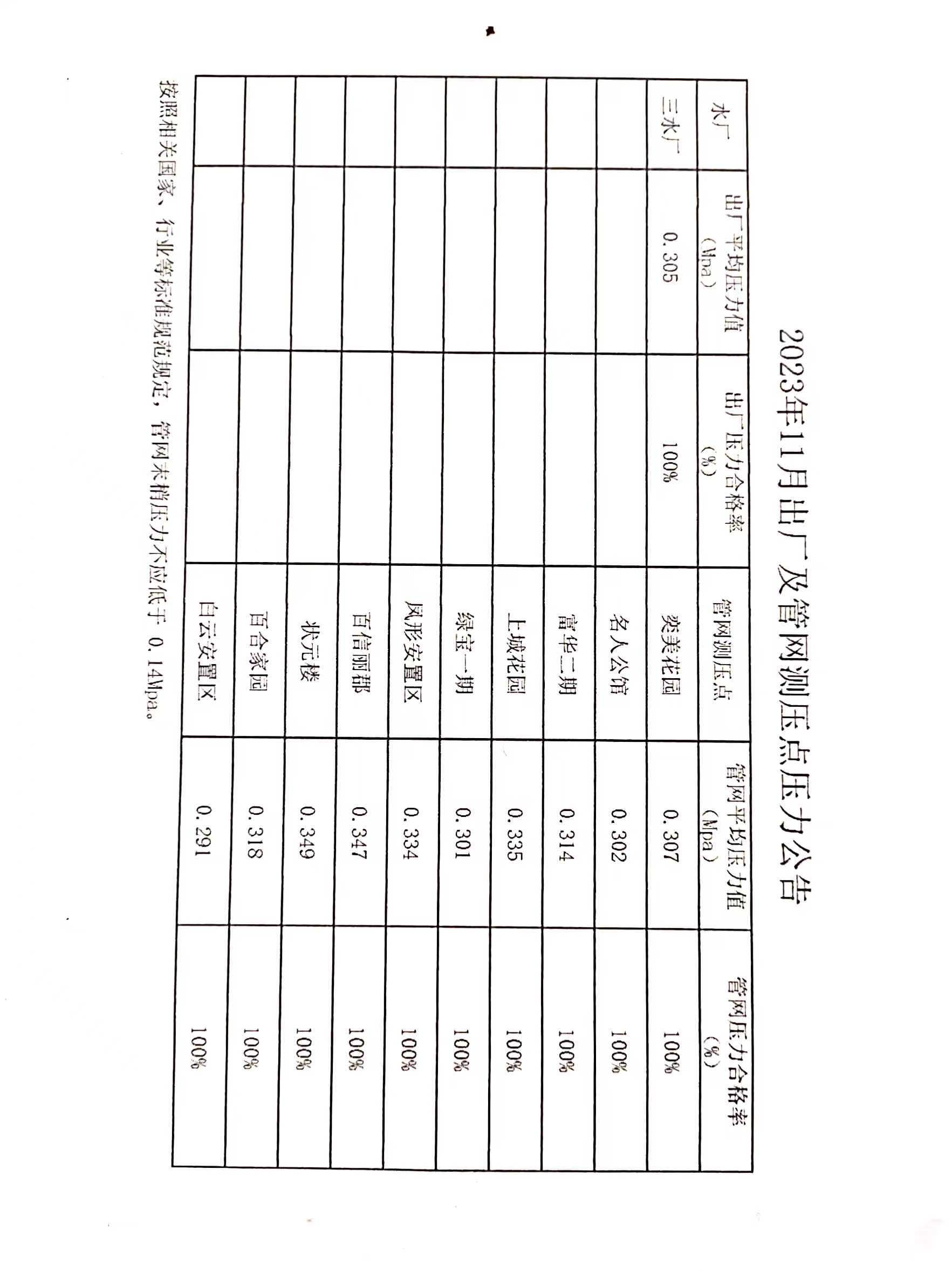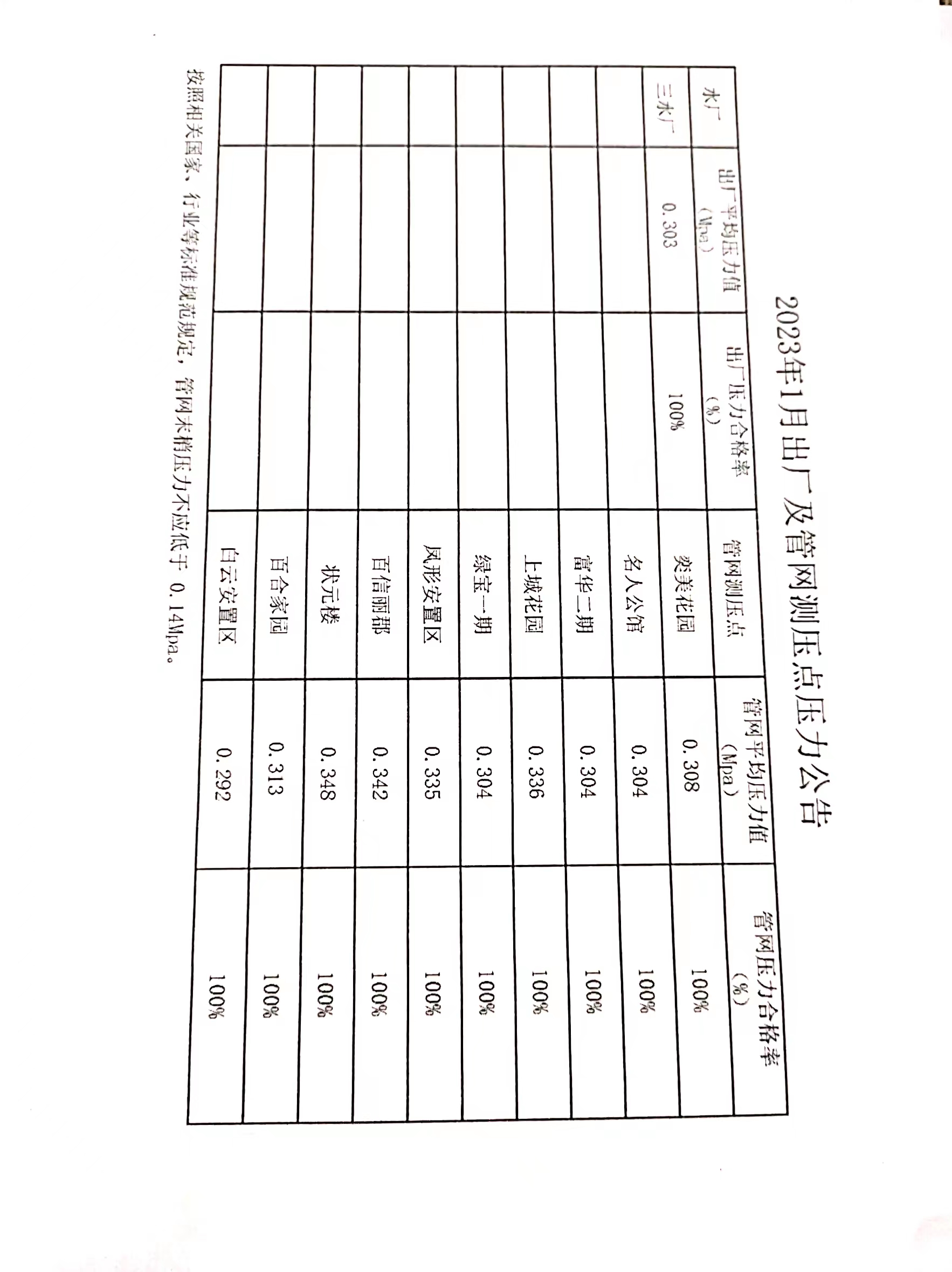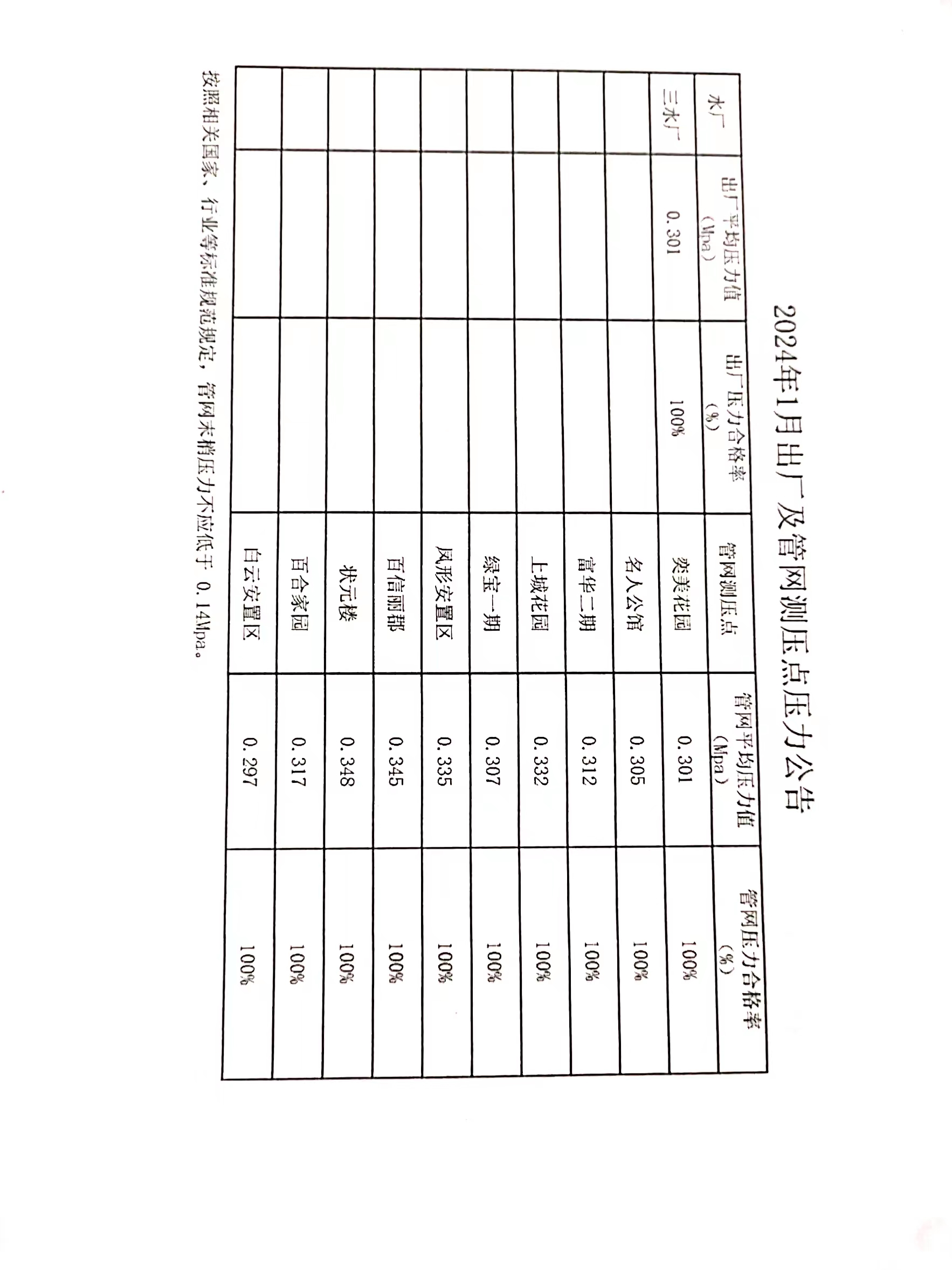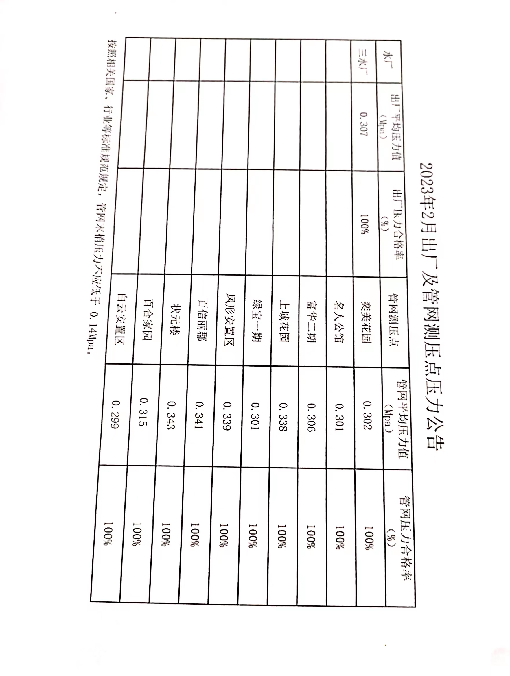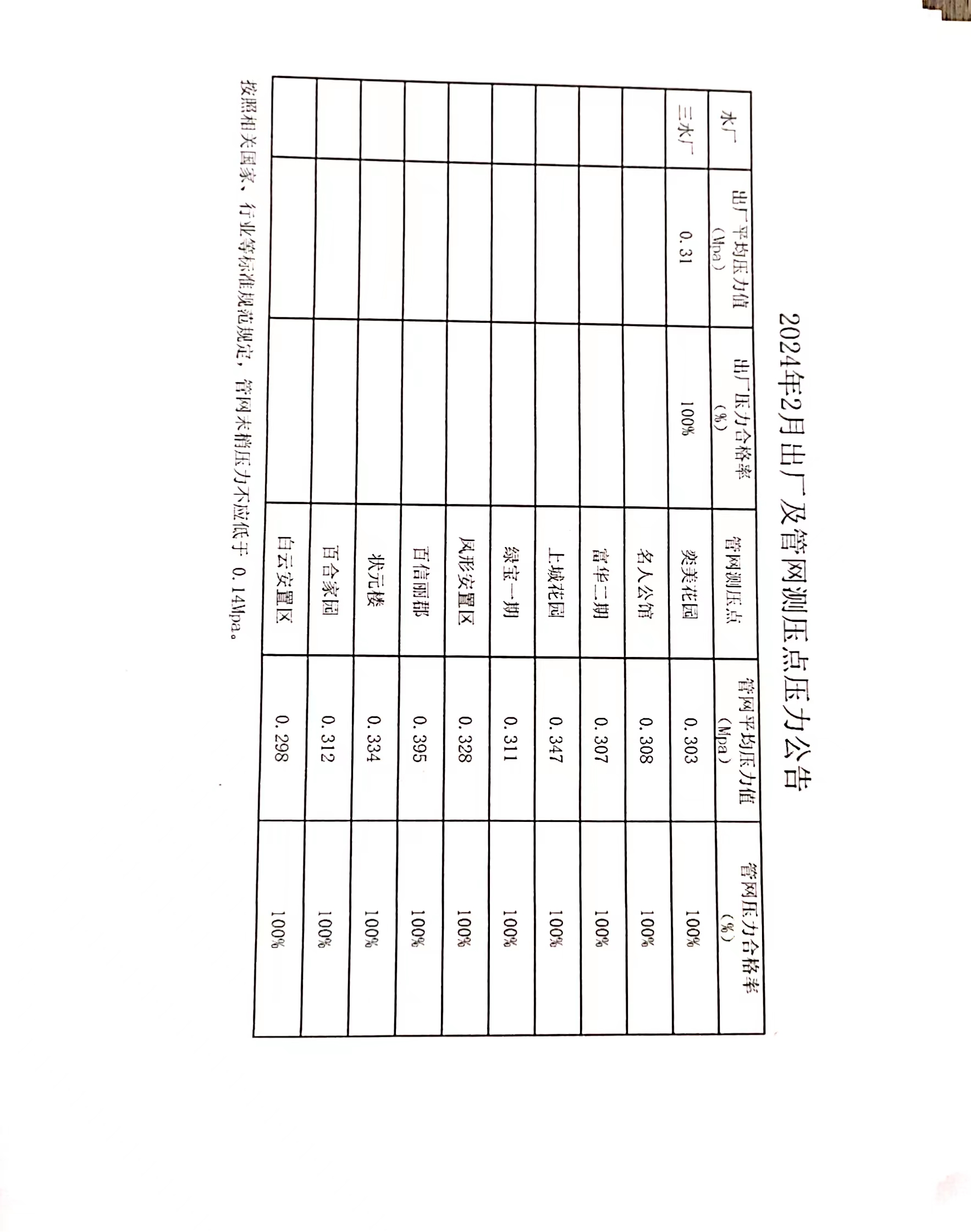2023年度至2024年2月出廠及管網(wǎng)測壓點(diǎn)壓力公告