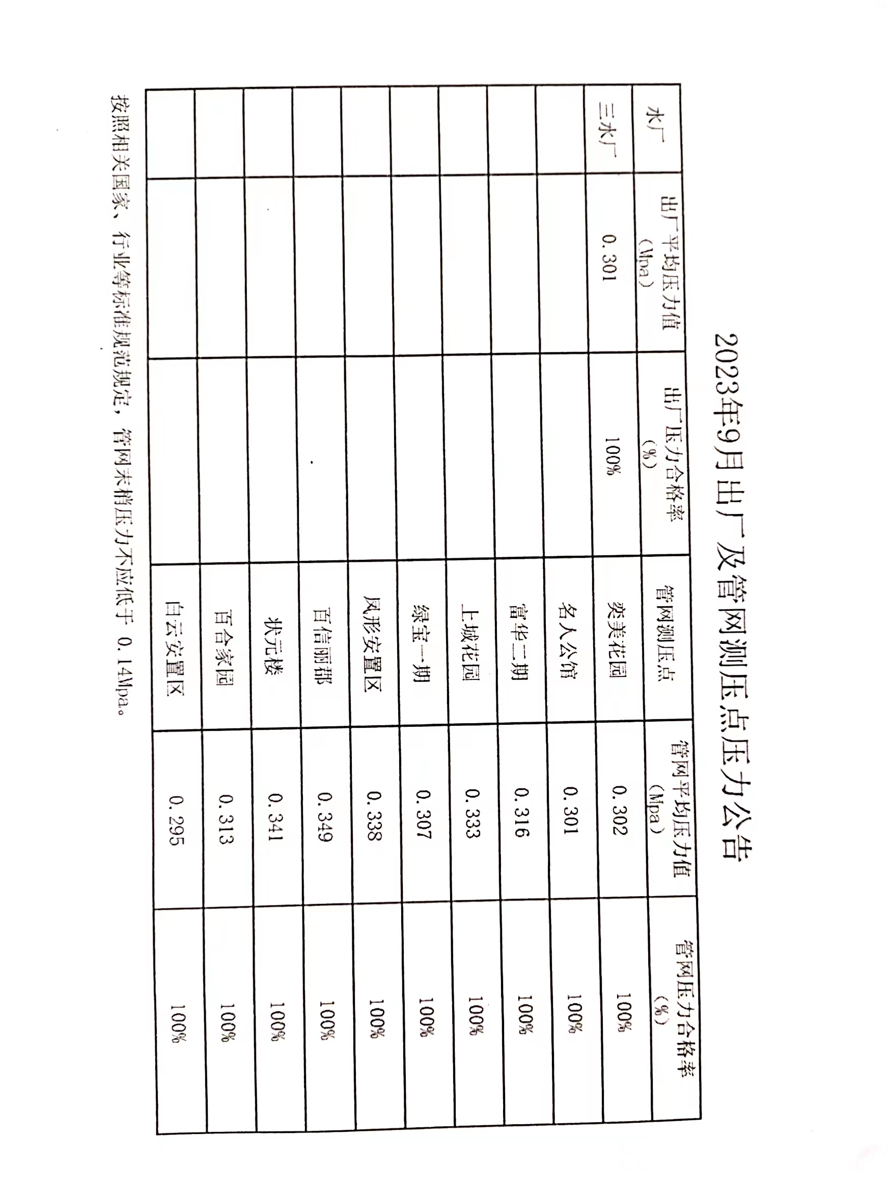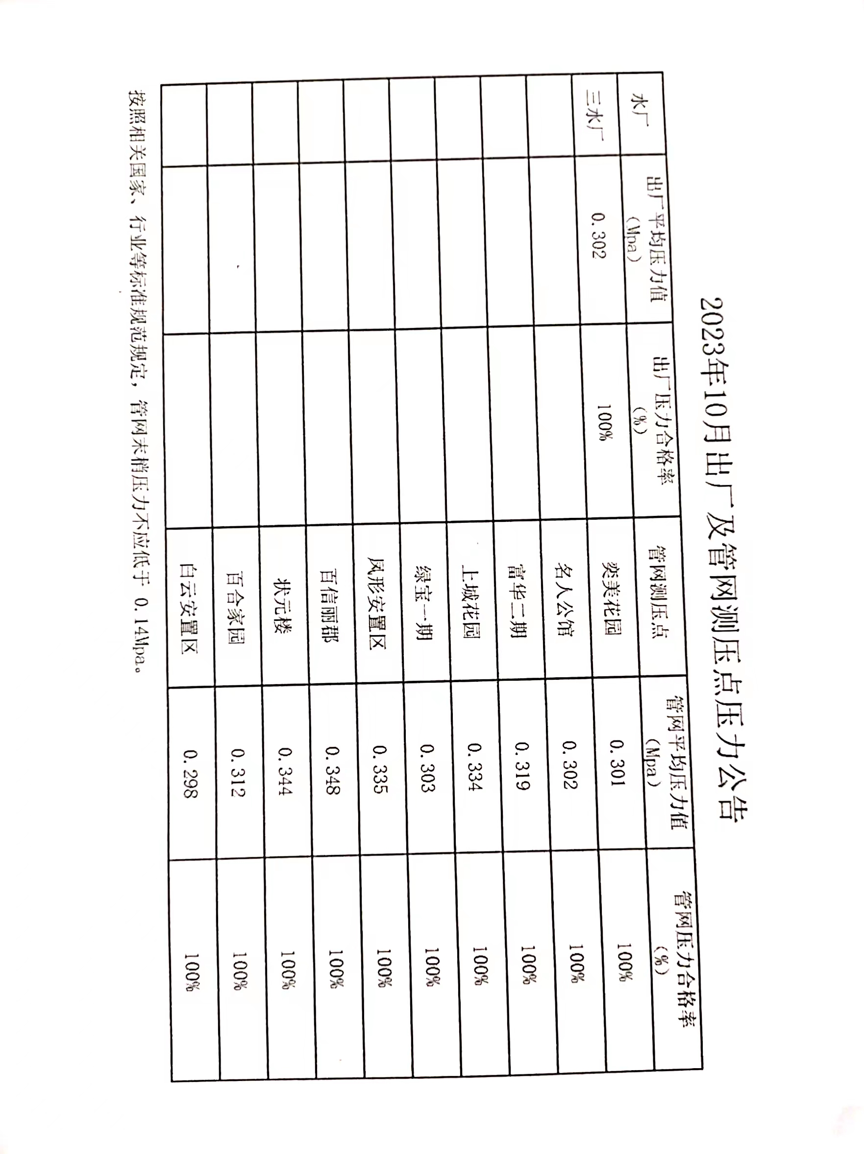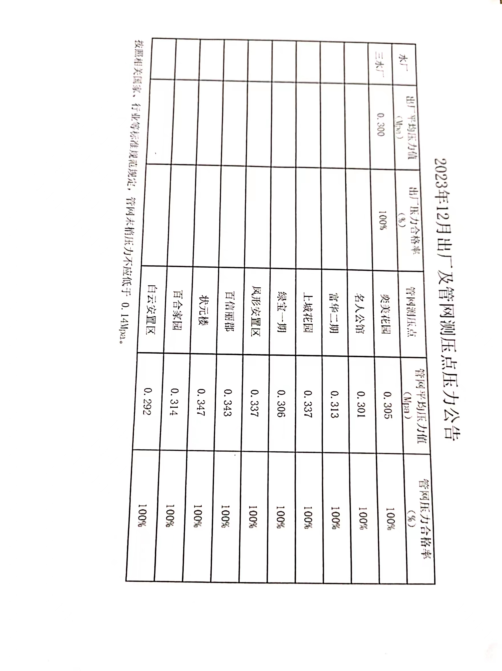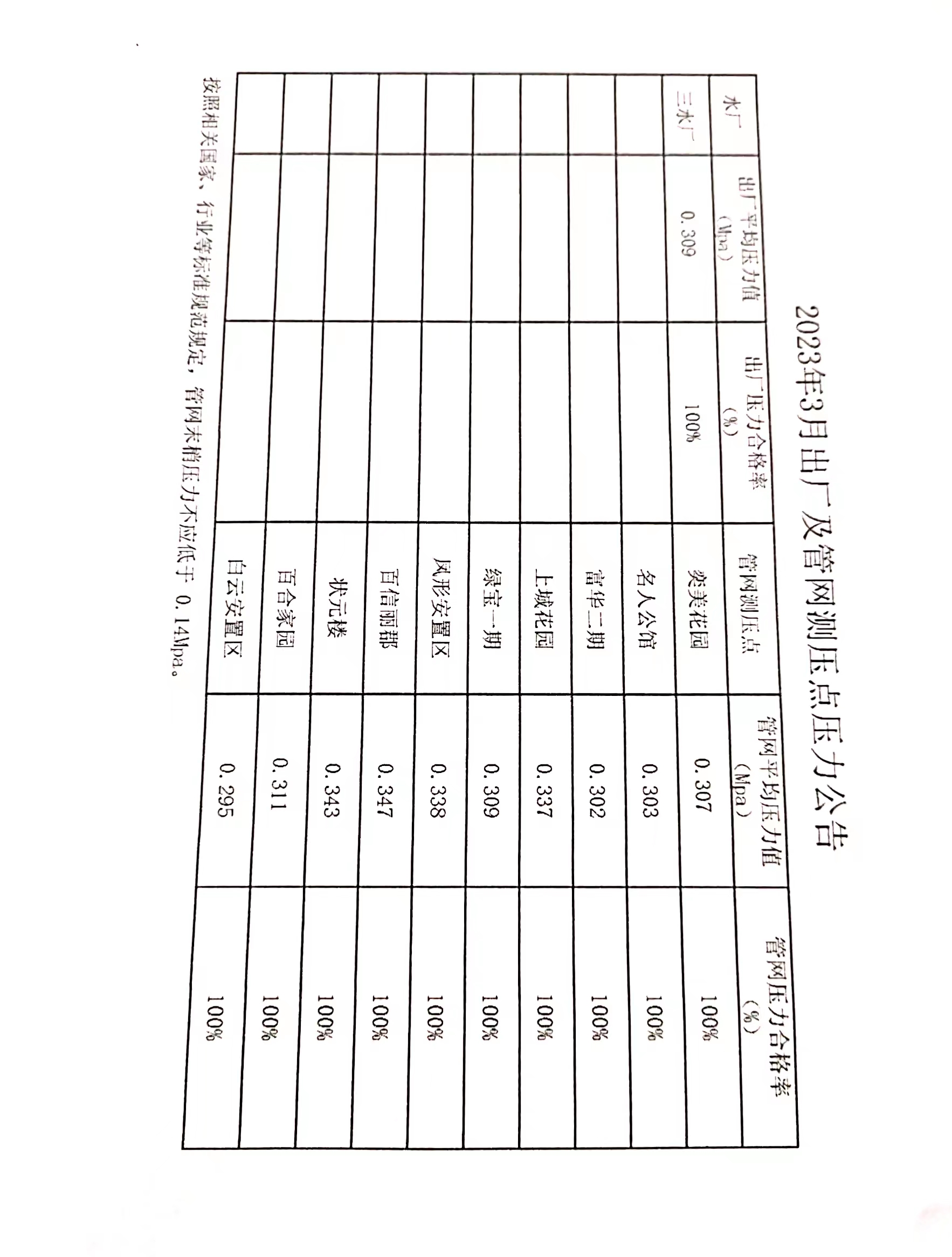 2023年度至2024年2月出廠及管網(wǎng)測壓點(diǎn)壓力公告
