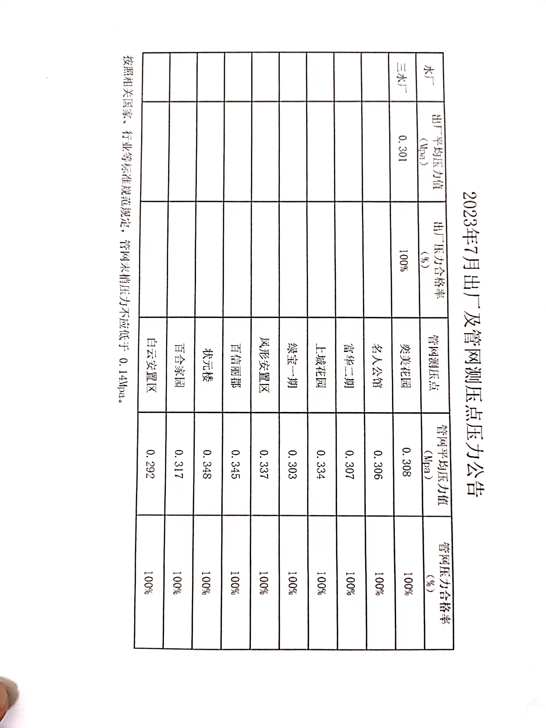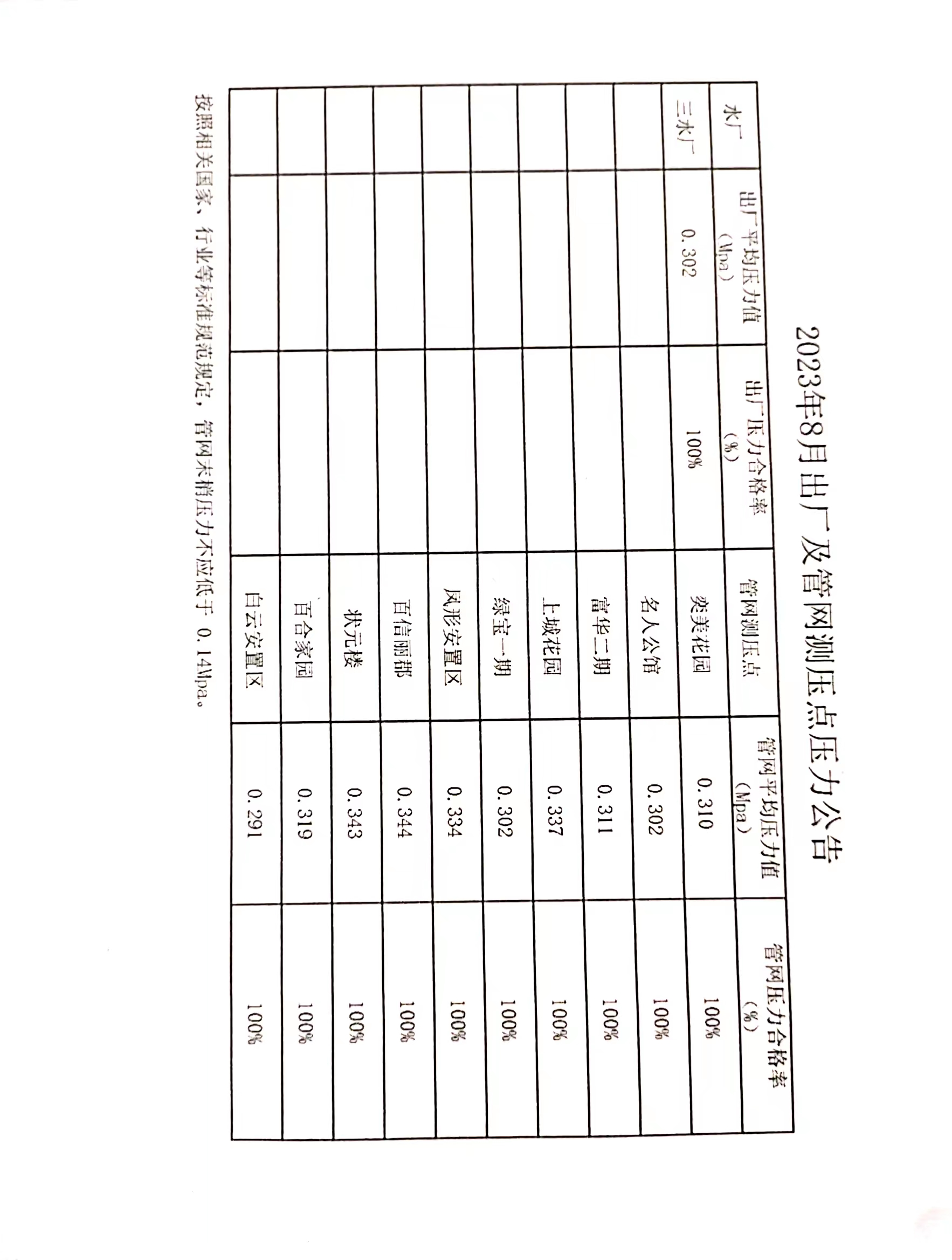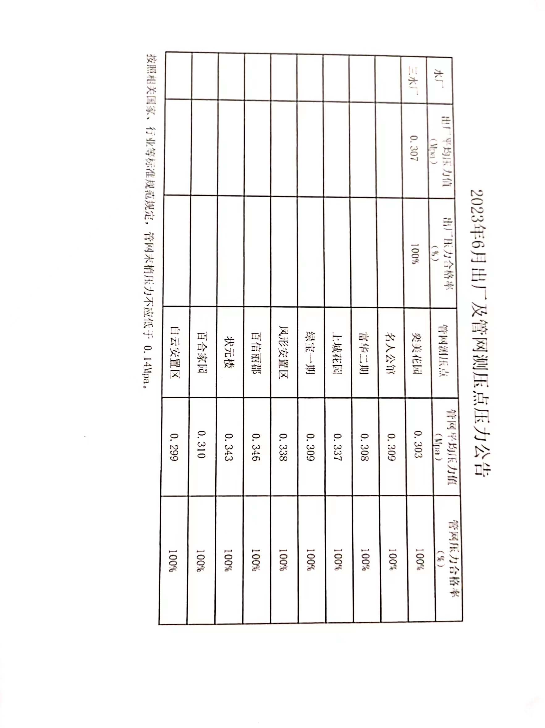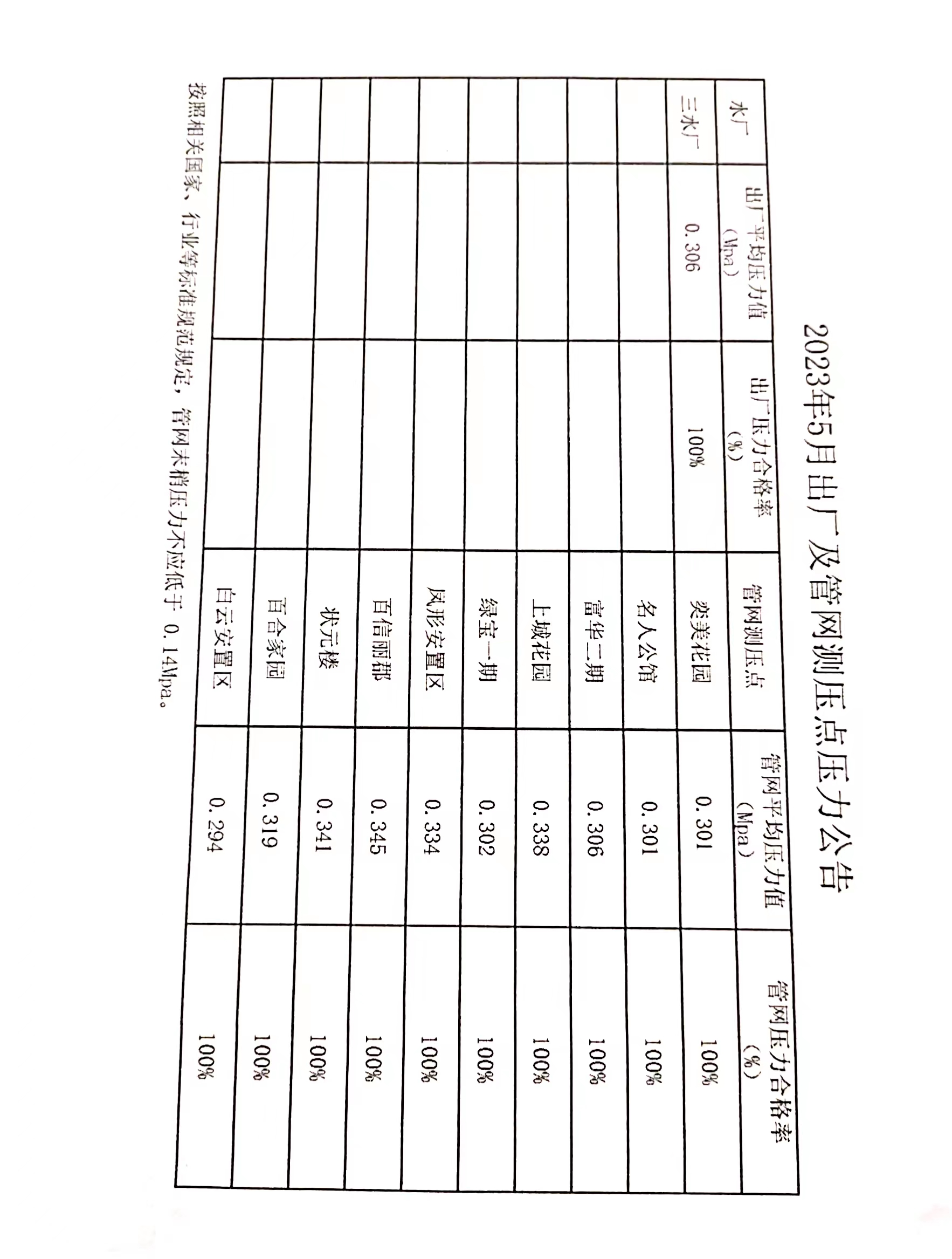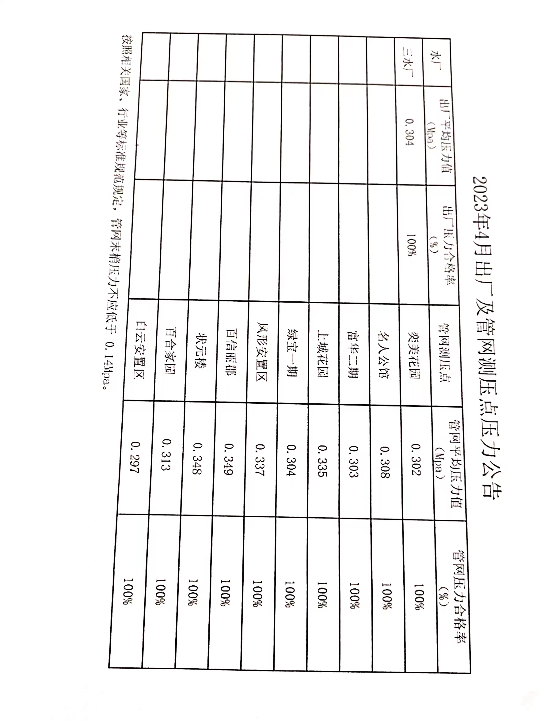 2023年度至2024年2月出廠及管網(wǎng)測壓點(diǎn)壓力公告