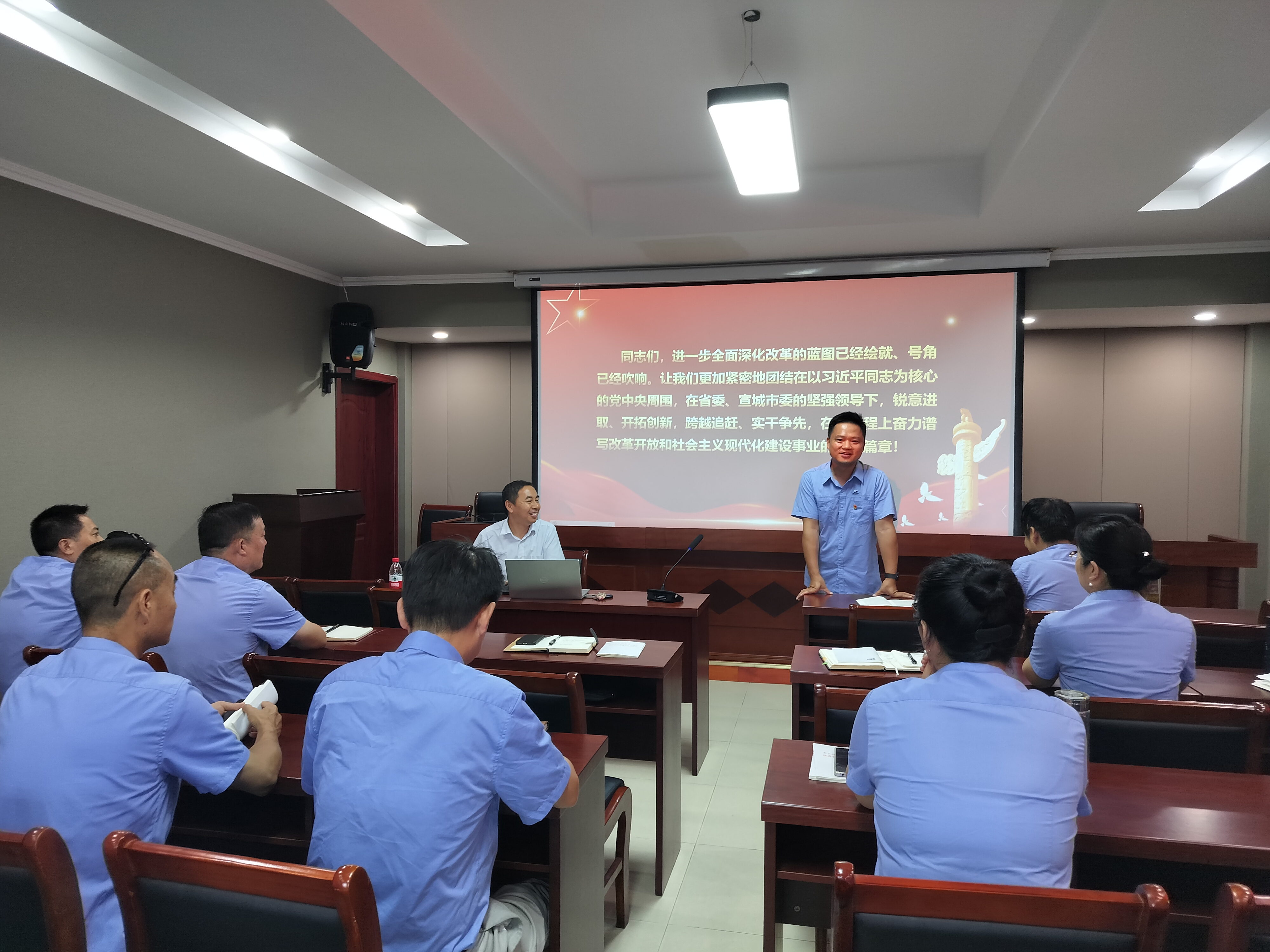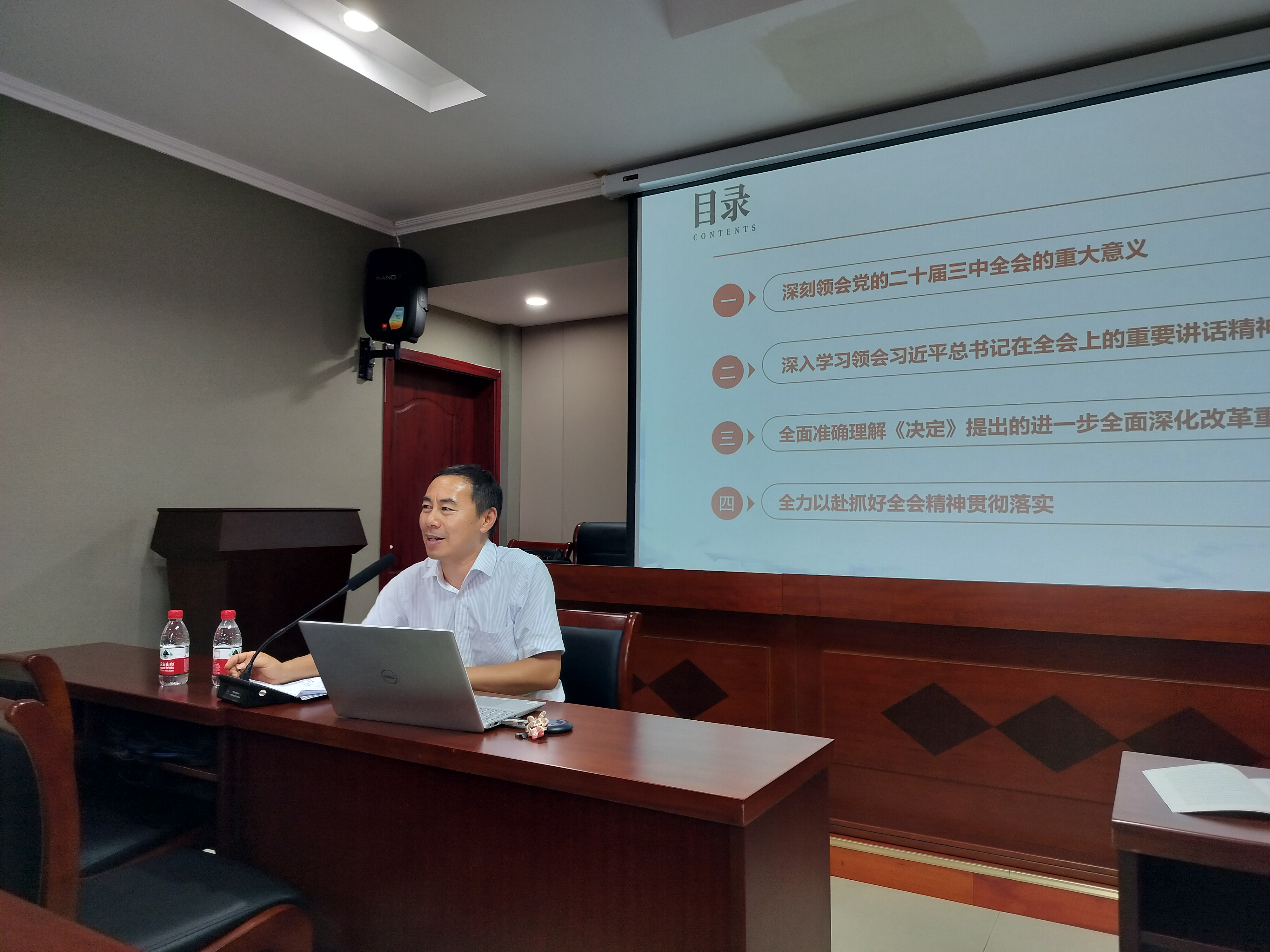 會(huì)議邀請(qǐng)了宣城市黨的十八大、十九大、二十大理論基層宣講團(tuán)成員李碧源老師給大家上了《學(xué)習(xí)貫徹黨的二十屆三中全會(huì)精神》主題黨課。李老師圍繞二十屆三中全會(huì)重大意義、《決定》中的重大舉措、抓好全會(huì)精神貫徹落實(shí)等方面,廣泛運(yùn)用案例,就二十屆三中全會(huì)精神進(jìn)行了宣講。