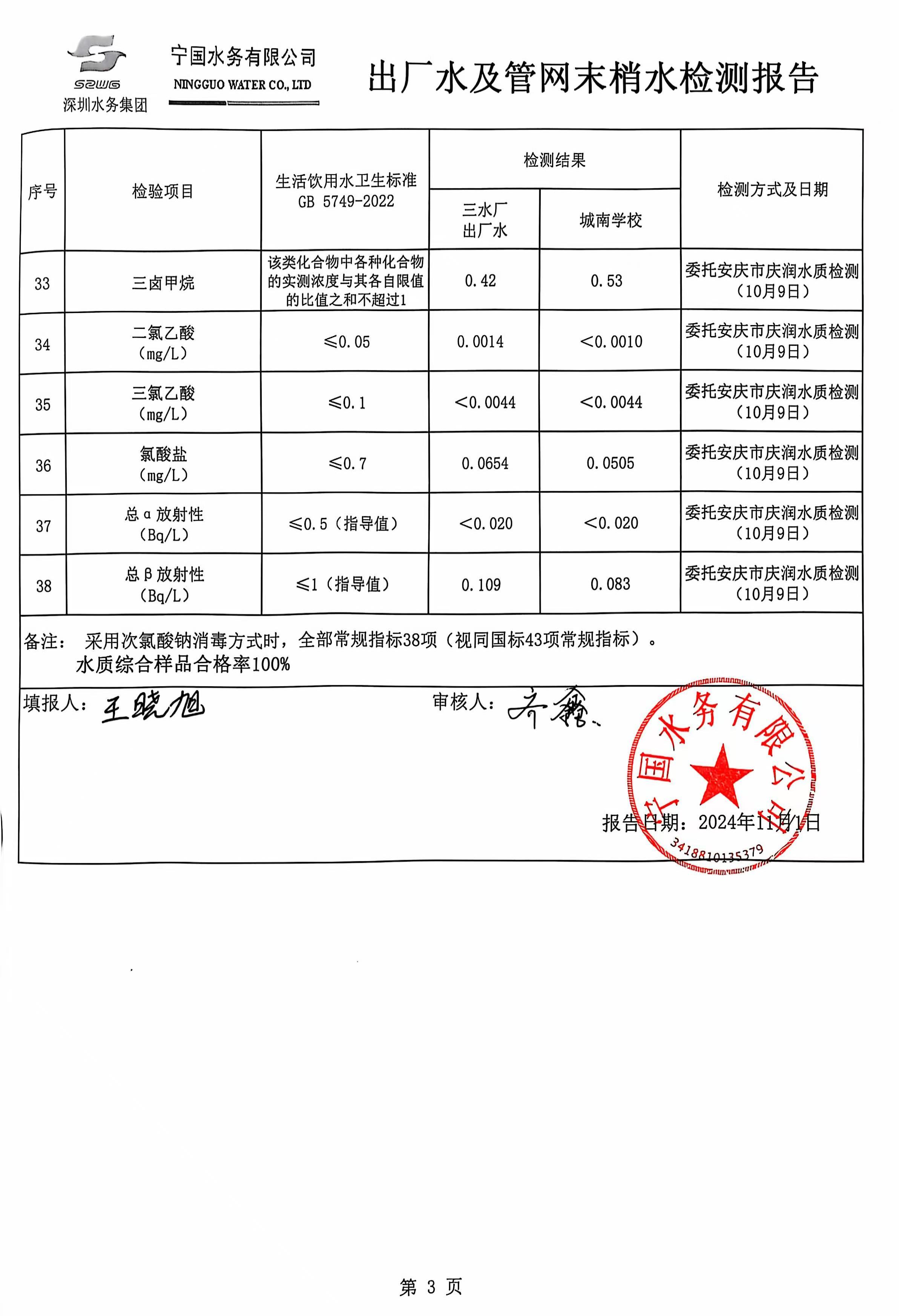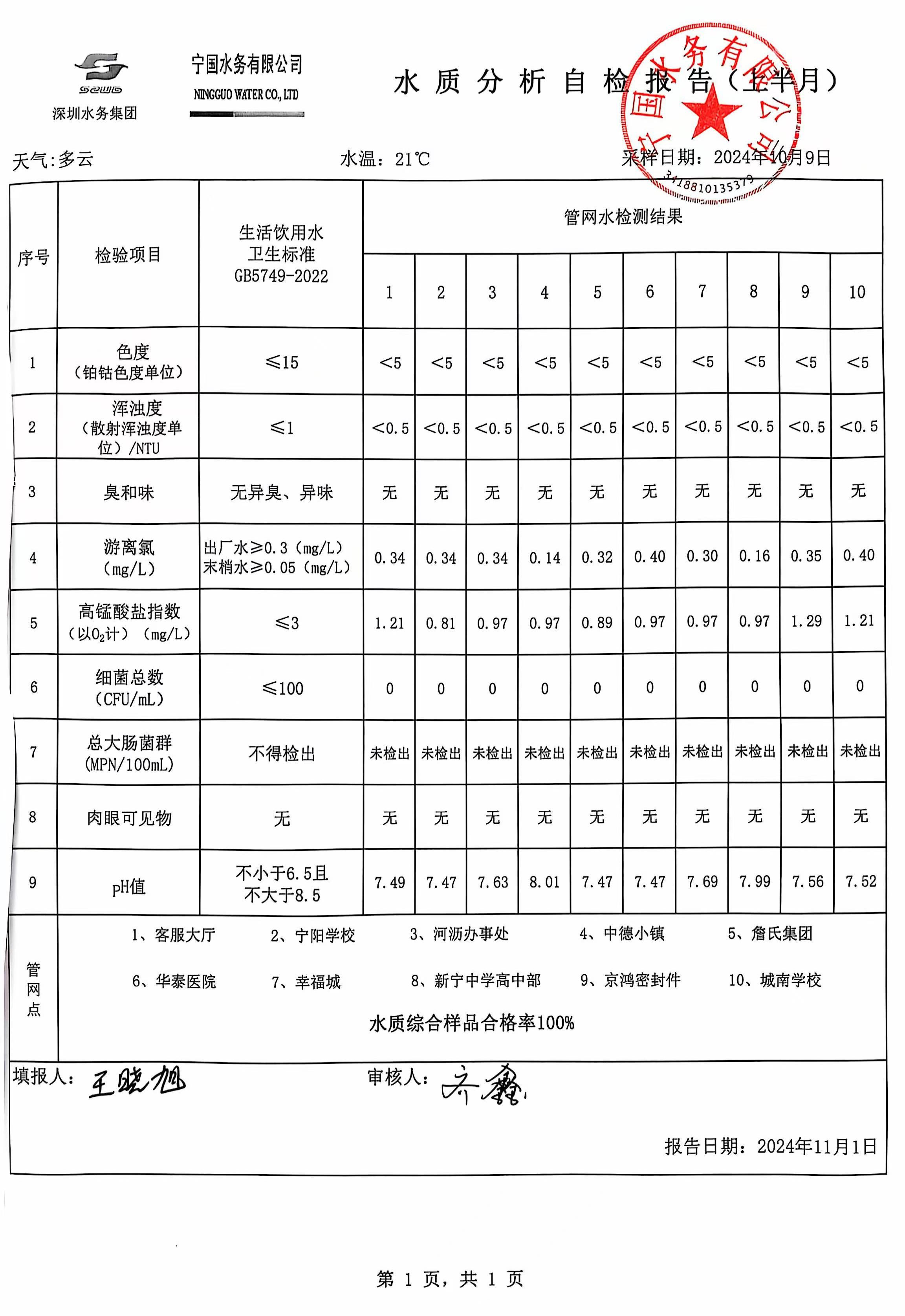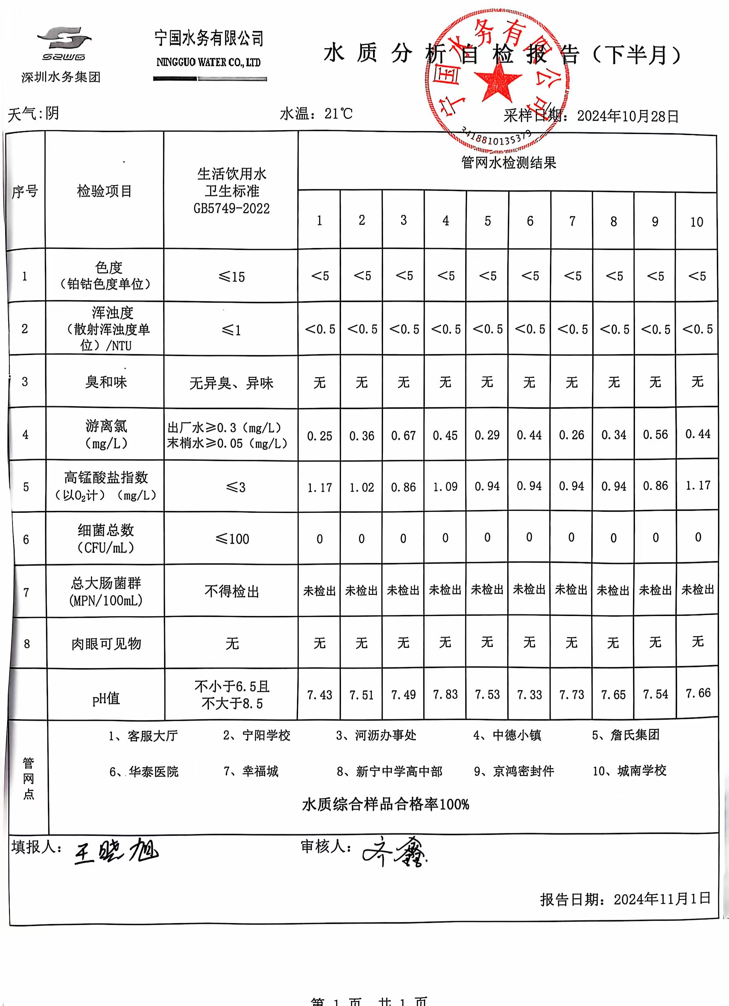 2024年10月份水質(zhì)報告