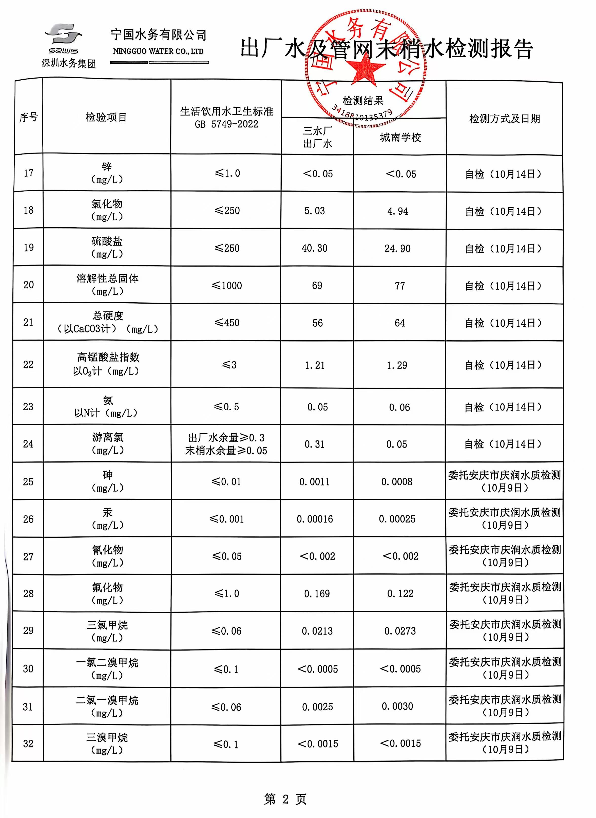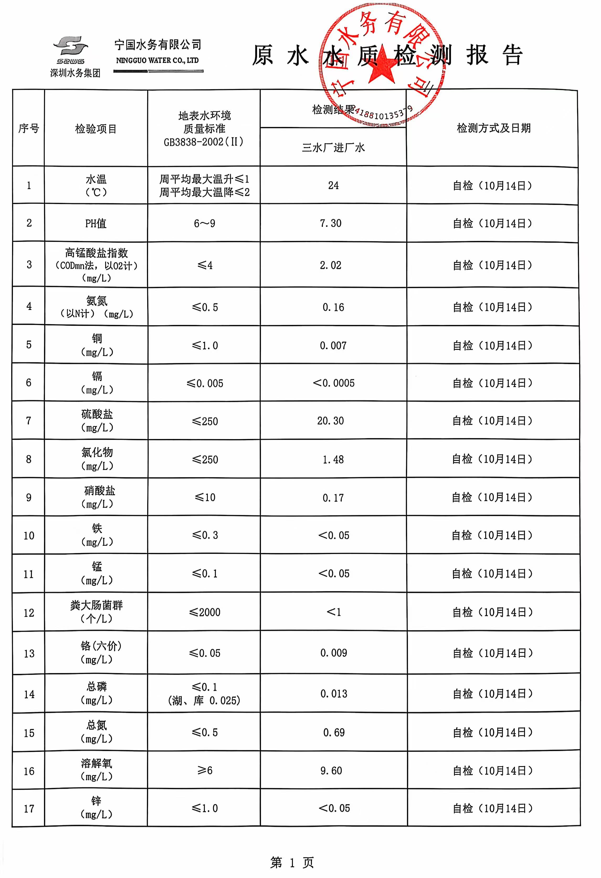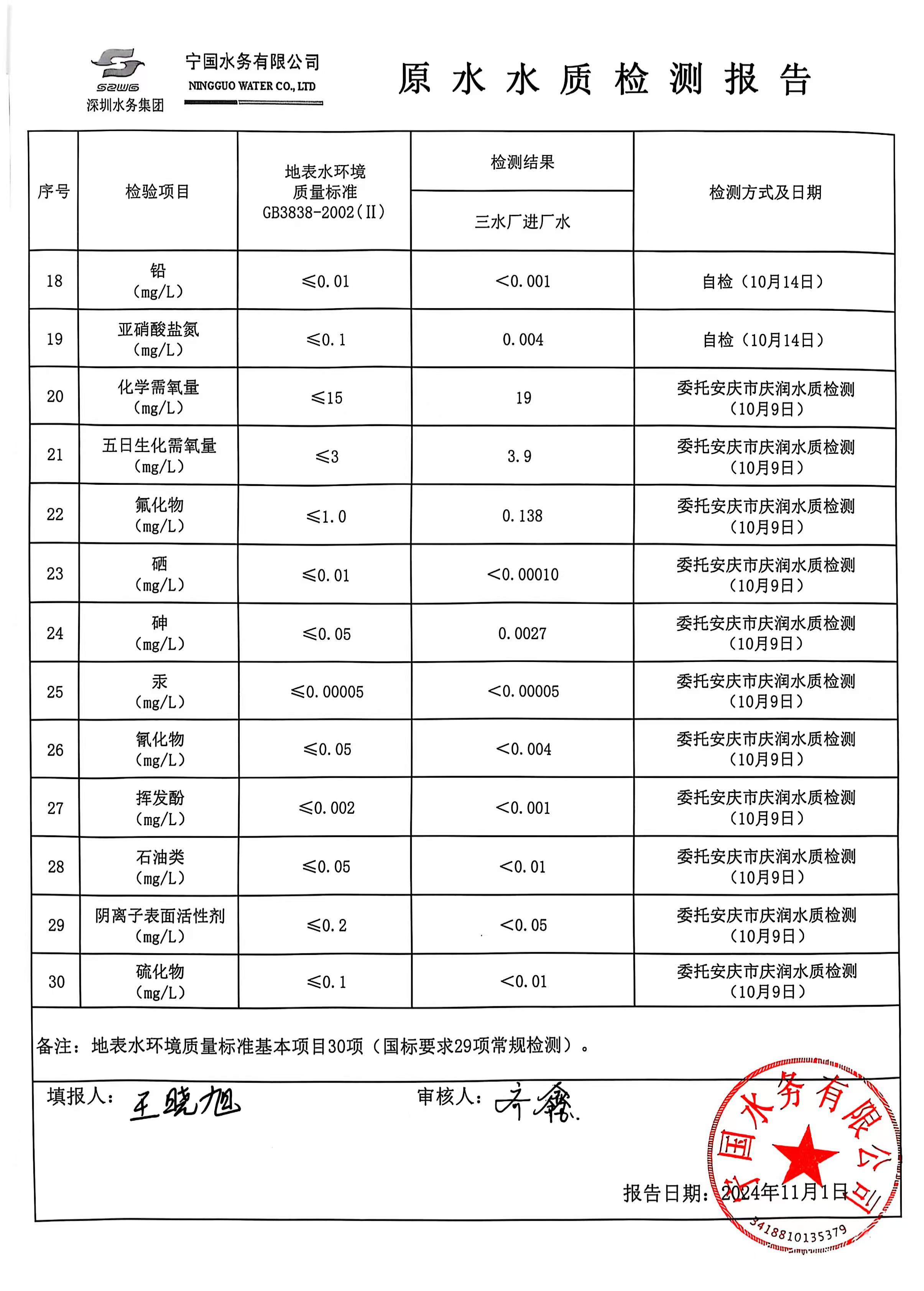 2024年10月份水質(zhì)報告